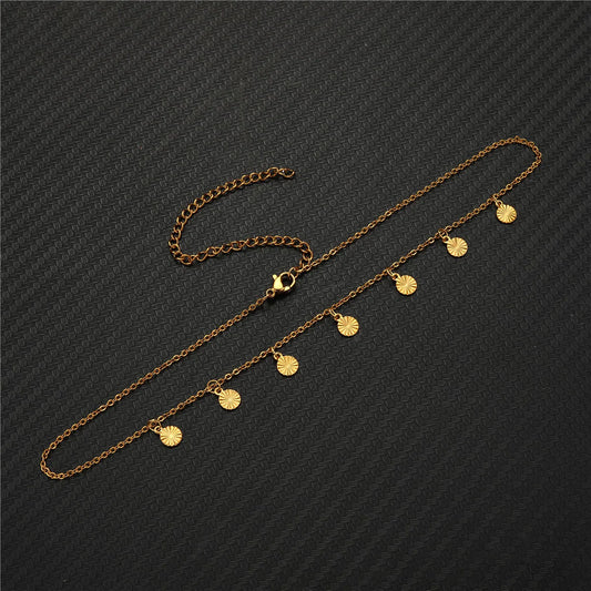 MinaMaMa New Style Gold Color Stainless Steel Tassel Glitter Disc Choker Necklaces For Women Fashion Vintage Collar Jewelry