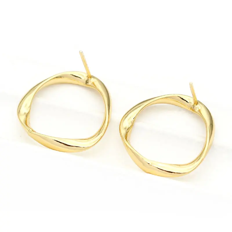 18K Gold Color Brass Round Circle Irregular Oval Rectangle Stud Earrings High Quality Diy Jewelry Earrings Accessories for Women