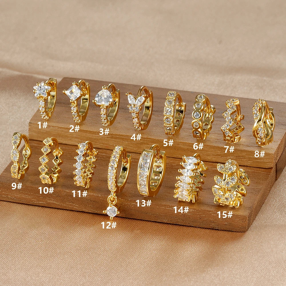 1PC 18K Gold Plated Stainless Steel Round Circle Earrings for Women Teens Cubic Zircon Star Leaf Hoop Earrings Piercing Jewelry