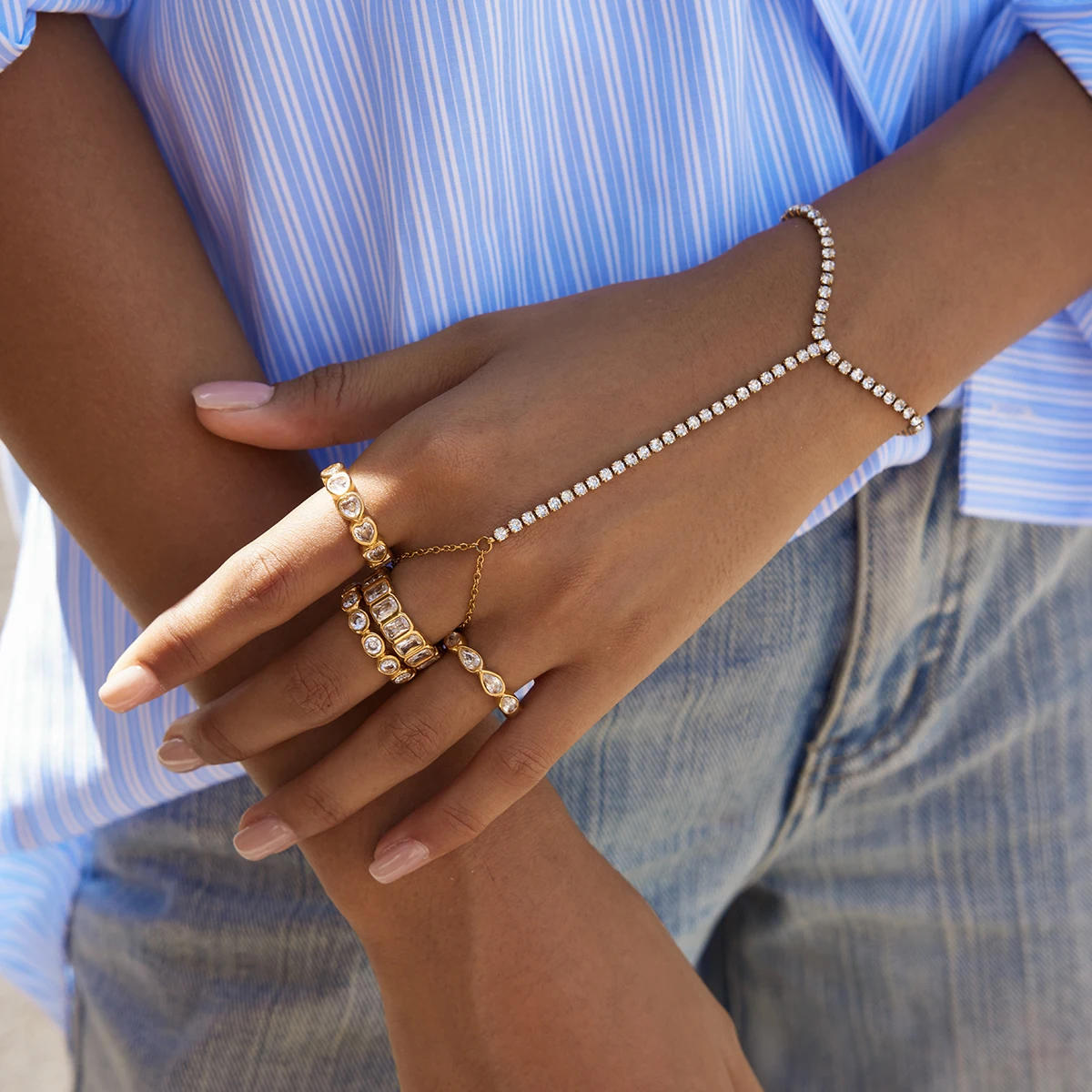 Youthway Luxury White Zirconia Linked Bracelet Stainless Steel 18k Gold Color Women's Bracelet Suitable for Wearing to Banquets